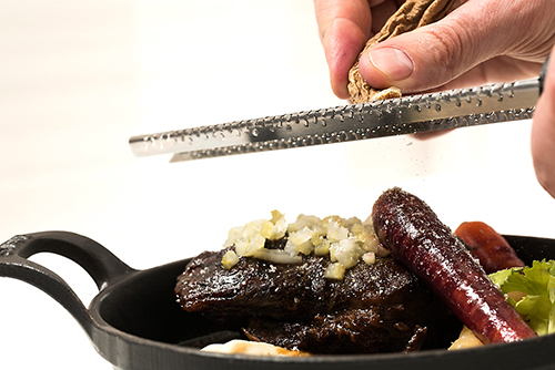 Le jeune chef Arnaud Marchand, qui a d’ailleurs été un des deux finalistes à l’émission « Les Chefs » en 2010, offre un menu des plus alléchants. « On veut goûter à tout tellement c’est bon ! » lance en riant Mme Gosselin, qui « craque particulièrement » pour le carpaccio d’omble de l’arctique. Du tataki de cerf à la joue de bison braisé, en passant par la soupe à l’oignon en cappuccino, il ne manque pas d’originalité dans le choix des plats.